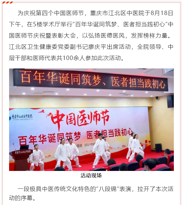 百年华诞同筑梦 医者担当践初心——江北区中医院开展医师节庆祝暨表彰大会